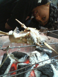 その後、川から上がって、いかりや長介似(ムービーあるけど、のせるのめんどくさい)のイカスおっちゃんがいる店で、岩魚の塩焼き(炭火焼)を食べました